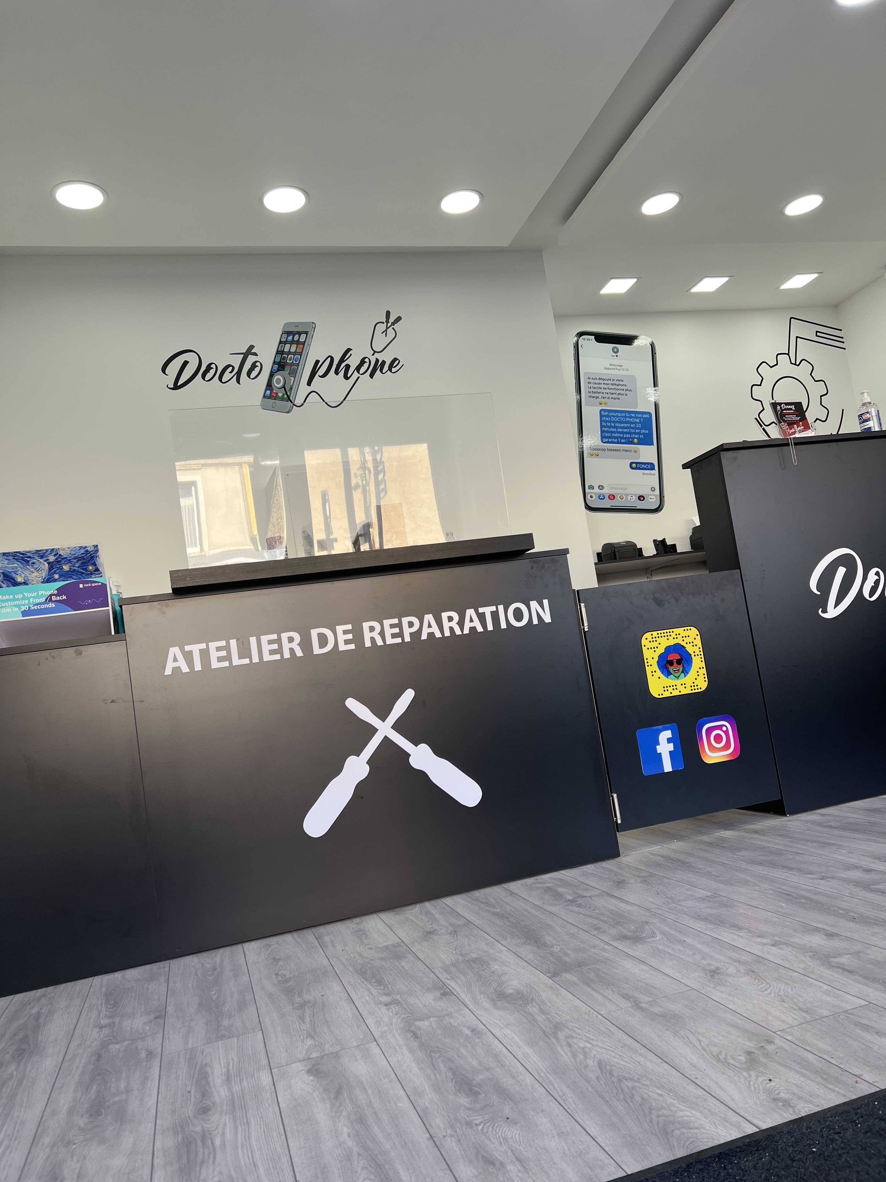 Je viens de sortir de chez docto Phone, Après avoir réparer mon Samsung auparavant chez un autre reparateur j'ai appeler plusieurs enseigne et je me suis rendu compte que docto Phone avait de très bas prix je m'y suis rendu La réparation a pris 20 minutes le monsieur m'a mis une protection en cadeau c'était vraiment gentil de sa part Je vous recommande cette enseigne vraiment n'hésitez pas