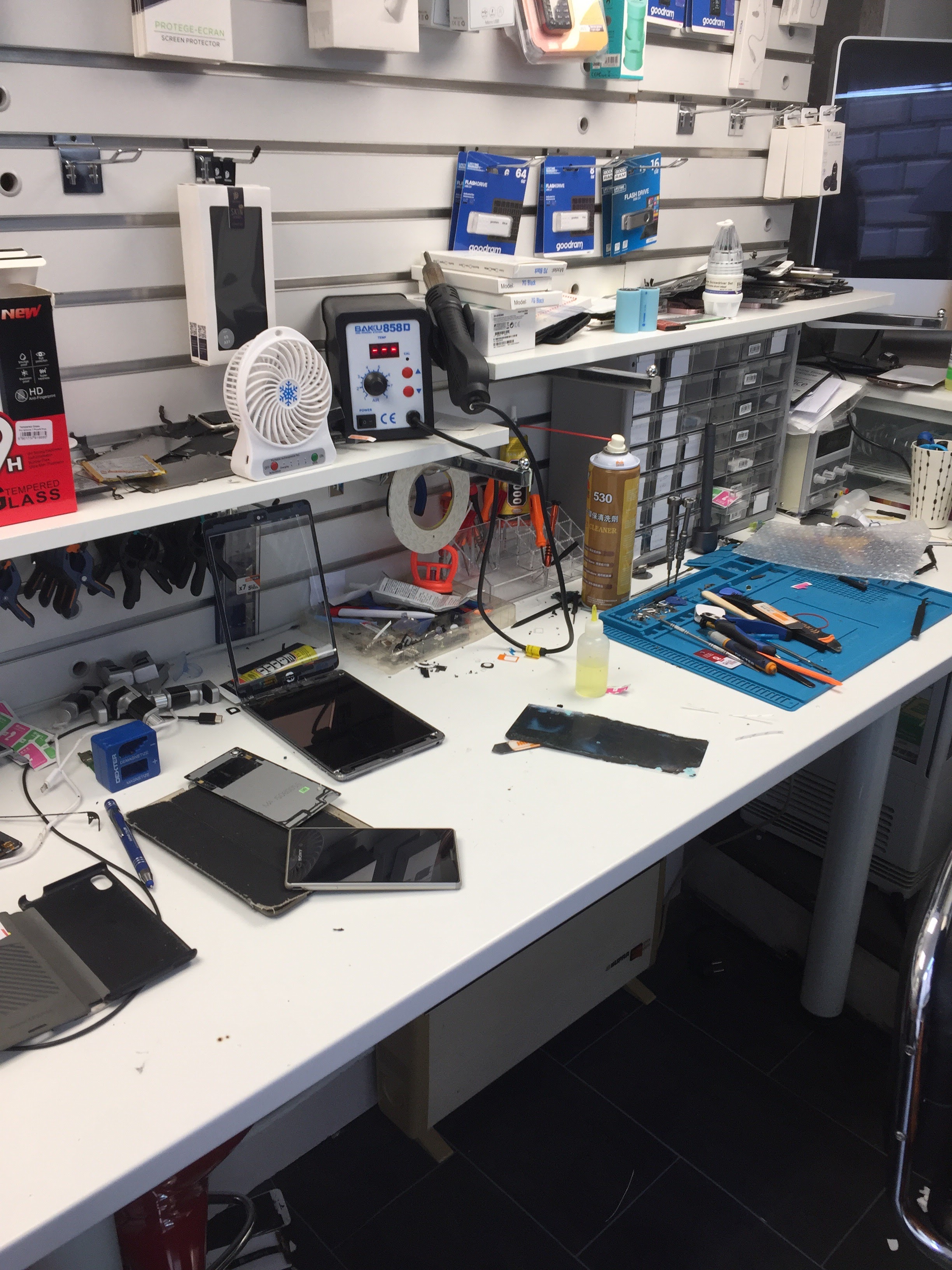 Gérant sympathique et arrangeant mais peu professionnel, mon téléphone est ressorti de sa boutique avec certes un écran neuf, mais avec son haut parleur cassé car il l'avait laissé tombé par terre devant moi... Autant vous dire que je ne lui ai pas demandé de réparer ça aussi de peur qu'il abîme encore plus mon téléphone