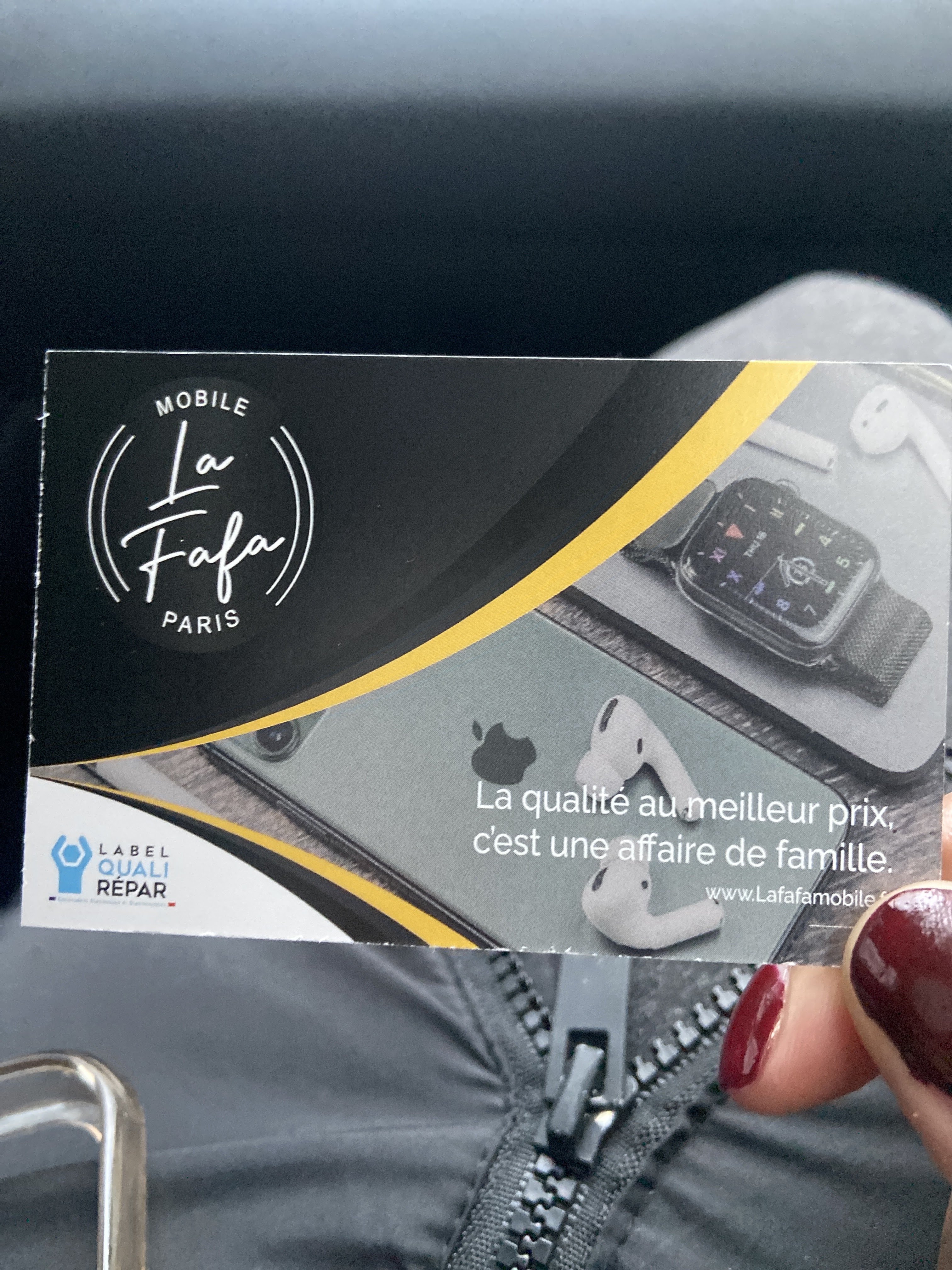 Je suis venue faire réparer mon iPhone 11 chez la Fafa Mobile et je suis satisfaite. J’ai été accueillit par une personne très accueillante et très professionnel. Ça a été très rapide en 15 minutes j’ai eu mon téléphone comme neuf. Je vous le recommande !!!!!